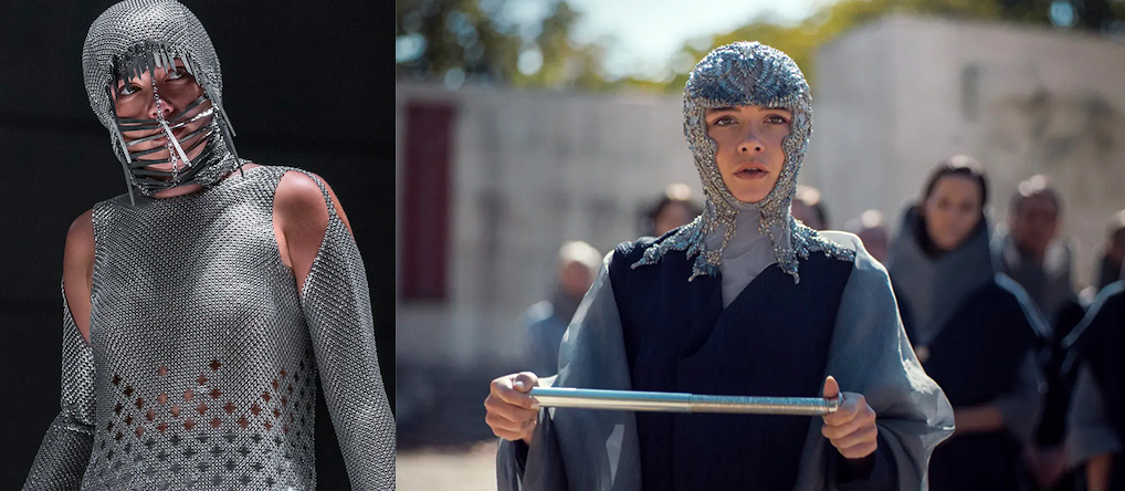 La West – esperta in costumi d’epoca – inizialmente ha rifiutato l’incarico proposto da Villeneuve fino a quando ha scoperto che il regista la voleva perché non cercava un’estetica stereotipata di fantascienza. Insieme al co-designer Bob Morgan e del loro team altamente qualificato, hanno realizzato modelli che lei stessa definisce “modieval” ovvero un mix tra moderno e medievale/d’epoca. L’high fashion incontra riferimenti storici da epoche e culture diverse in un connubio di tessuti svolazzanti, perline, armature, amuleti e paramenti sacri mozzafiato.